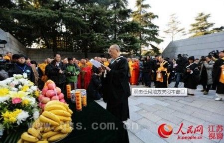 【《人民网》2014年12月14日《人民网江苏视窗·社会》讯】“我等日本佛教徒也充当了侵略战争的急先锋!”面对“哭墙”上一个个遇难者的名字,日本僧人代表释良雄忏悔表白。昨天下午,中日韩三国佛教界在侵华日军南京大屠杀遇难同胞纪念馆联合举办“世界和平法会”,悼念30万遇难同胞。