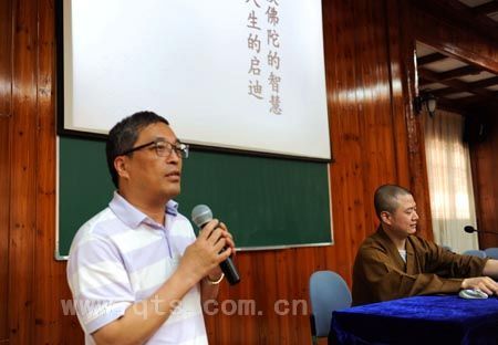 在讲座中,可祥法师重点讲解了原始佛教的教义。从佛陀出家后先修婆罗门教所倡导的苦行讲起,后佛陀因觉悟到单纯的苦行无益于解脱,遂放弃此种修行方式而转向禅思悟道,终于获得无上正等正觉,而且发现“众生皆具如来智慧德相”,都可悟道成佛。佛陀成道后,开展了长达49年的弘法教化,采用各种方 便说法,确立八万四千法门,如诸行无常、诸法无我、涅槃寂静“三法印”,目的都是为了启悟迷惘的众生,以发心上求无上佛道。由此说明佛教是崇尚智慧与平等 的宗教,是重视发掘生命潜能的宗教,是敢于突破传统、大胆革新的宗教,是鼓励人们大胆怀疑、看破表象、探究本质的宗教,对社会人生有很大的启迪作用,值得不断深入挖掘研讨。