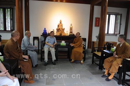 6月25日,杭州市民宗局局长郭清晔、杭州佛学院常务副院长刚晓法师一行来七塔禅寺考察建筑,受到监院界义法师等的热情接待。