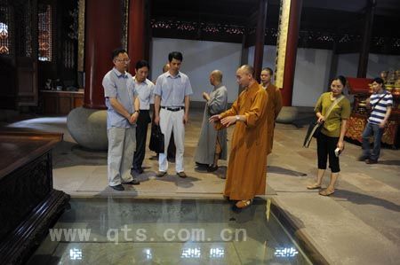 郭局长与刚晓法师等主要来考察寺院古典建筑,以为佛学院建设采集资料、提供借鉴。界义法师引领客人参观了寺院各主要殿堂,以及新建成的禅学堂、 图书馆、阅览室等,分别就各建筑的历史、特色、功用等作了细致讲解,引起了客人们的兴趣。郭局长等表示,七塔禅寺作为典型的传统丛林和地处闹市中的都市寺 院,无论古式殿堂还是新型建筑,均不乏匠心特色,有不少值得学习借鉴的地方。
