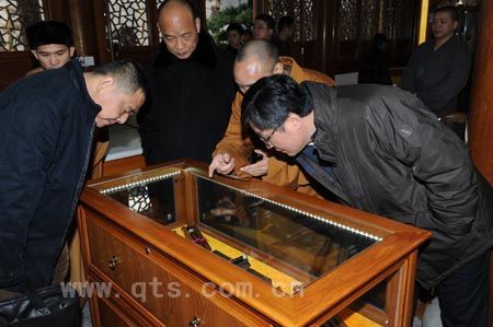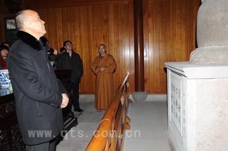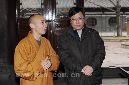 本次陪同视察工作的领导还有:国家宗教局一司佛教处副调研员颜玉科、浙江省民宗委宗教一处处长吴梦宝、宁波市民宗局宗教二处处长章洪春、江东区民宗局局长赵跃进等。参与接待工作的执事还有:七塔禅寺副寺法净法师、书记题坤法师等。