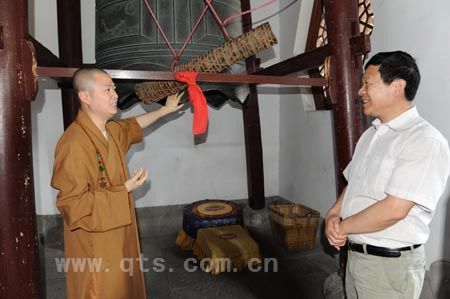 5月17日下午2时,中共浙江省委统战部副部长、省社会主义学院副院长张惠康、省委统战部宗教处处长倪卫东一行在市委统战部副部长、市民宗局局长陆立宪等的陪同下视察七塔禅寺,受到可祥大和尚等的热情接待。 入寺 参观宋代大钟 参观五百罗汉壁画 瞻仰祖师舍利塔 方丈室亲切交谈 张惠康部长、可祥大和尚合影 集体合影