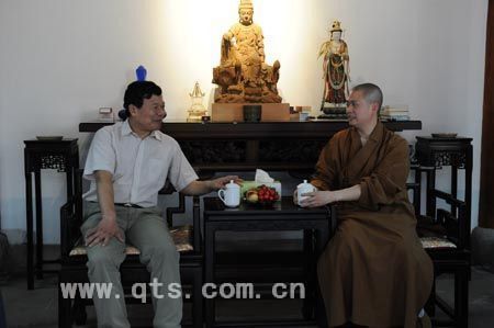 在大和尚的引领下,张部长视察了西北角工地并听取了大和尚的汇报,张部长对工程深表赞许。在瞻仰完心镜禅师舍利塔后,大和尚与张部长在方丈室进行了亲切交谈。
