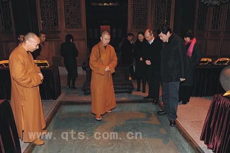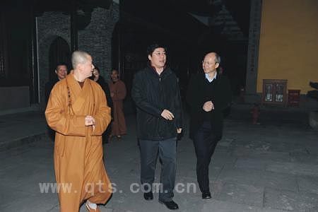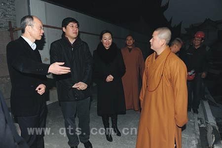 下午5时左右,陈书记一行到达山门口,与大家见面。随后一起入寺,依次参观了各殿堂,视察了西北角建设工地,听取了可祥大和尚及区领导的相关情况汇报,表示非常满意。最后,陈书记特别嘱咐寺院,要做好当晚撞钟法会及春节期间的治安与消防工作安排。