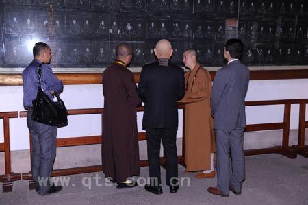 大殿礼佛 现场讲解 观赏罗汉图 参观工地 瞻礼开祖舍利塔 互赠礼品 合影留念