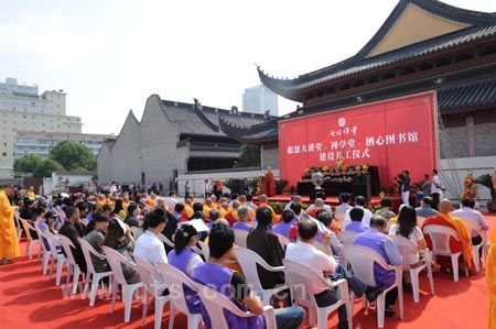 当日上午,丽日当空,天朗气清,在寺院西北角建设工地,装饰一新的开工仪式现场分外亮丽喜人。8时整,在可祥大和尚的主持下,寺院常住法师、居士及信众一起,在工地现场举行了庄严的洒净佛事活动。