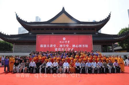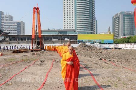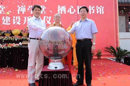 9:30,可祥大和尚与陆立宪局长、胡国权副区长一起启动了一号桩机,扩建工程正式拉开帷幕。顿时,工地上礼花飘舞,礼炮、鞭炮齐鸣,现场响起长时间热烈的掌声,气氛达到了高潮。最后,与会者一起合影留念,以共同见证此难得的盛事庆典。