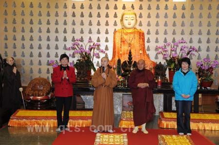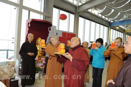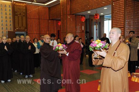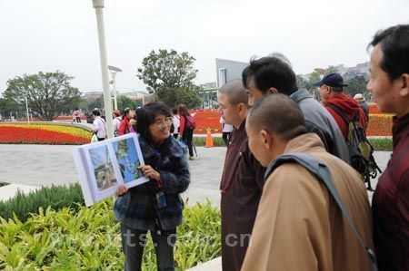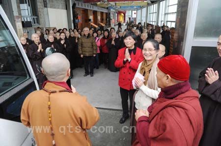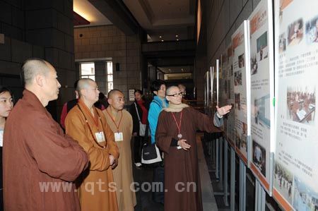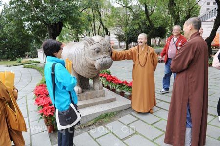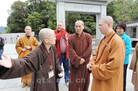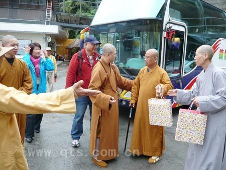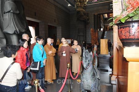 元月19日~25日,在可祥大和尚的带领下,由首座惟日法师、知宾明如法师、《报恩》杂志主编贾汝臻居士等组成的七塔禅寺参访团,赴宝岛台湾进行了为期一周的考察交流,取得了比较理想的参访效果。宁波市民宗局副局长顾卫卫女士作为特邀指导顾问,随团参加了此次参访活动。 19日凌晨2时,经过两夜奋战终于就位的普门柱成功矗立后,可祥大和尚一行始冒雪连夜赶至杭州,稍事休息又赶往萧山机场乘机。上午11:30左右到达台北桃园机场,与张子树居士及司机姚师傅会合。张居士是可祥大和尚的老朋友,台北源泉旅行社董事长,曾多次组团前来大陆参访名刹圣地,也接待过不少大陆佛教界参访团。此次台湾之行,张居士亲自全程陪同,导游解说,并悉心妥善安排每日行程,为考察活动创造了十分便利的条件。 午餐后,参观士林官邸及故宫博物馆。台北故宫博物馆中陈列的文物大都是解放前从北京故宫、沈阳故宫、热河行宫等处辗转运来,大约有60万件,有书画、碑帖、图书、铜器、玉器、陶瓷、文房用具等,其中珍品甚多,如书画真迹有王羲之的《快雪时晴帖》,黄公望的《富春山居图》后部长卷,怀素的《自叙帖》,颜真卿的《刘中使帖》,苏东坡的《寒食帖》等。在此,张居士特意安排一名佛门义工,带领大家逐层参观,详为介绍,重点观赏了翠玉白菜、肉形石、毛公鼎等镇馆之宝,留下了深刻印象。 灵鹫山四众欢迎参访团 可祥大和尚与心道法师佛前拈香 宾主礼佛 鲜花供佛 可祥大和尚致辞 心道法师致辞 心道法师向可祥大和尚赠送如意 佛前供灯 参观介绍 心道法师当年闭关的法华洞