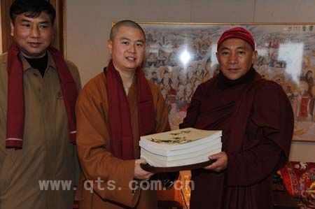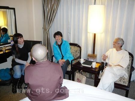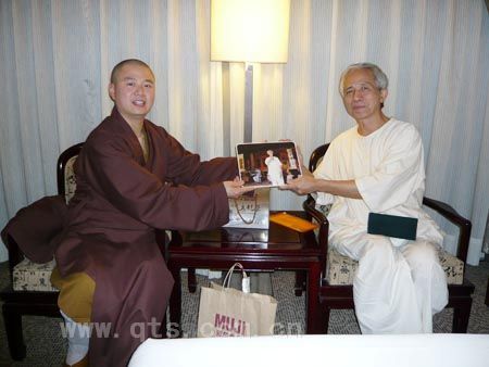 晚上,刚从北京回来的台湾佛光大学教授林谷芳先生偕同夫人前来看望大家。自去年4月响应可祥大和尚邀请,率台湾“忘乐小集”艺人来七塔禅寺成功举办了两场“海上禅·茶·乐”盛会后,双方均留下了美好的印象。林教授依旧一身短袖白衫,寒暑不变。他解释说,这一方面是由于坚持打坐参禅,另一方面是自己善于把握念头,当下截断冷热感受的念头,不随之流转,自然冷热无碍,处处自在。林教授给可祥大和尚带来了《十年去来》等自己参与编辑的几册书籍。双方在欢洽的交流气氛中,协商了下一步继续合作的相关议题,并约定参访团返回台北后再相聚。