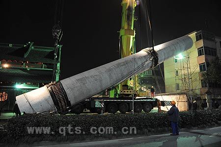 由七塔禅寺大护法储吉旺居士捐资建造的"普门柱",于19日凌晨吊装树立成功。