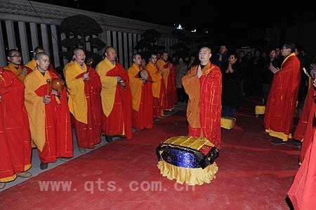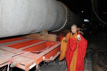由七塔禅寺大护法储吉旺居士捐资建造的"普门柱",于19日凌晨吊装树立成功。