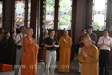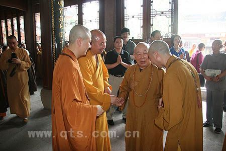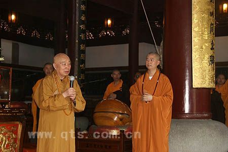 传老开示完毕后,可祥大和尚对长老不辞辛苦来到七塔禅寺视察,并为大家作了精彩开示表示深深的感谢!表示一定会遵照长老的教导,进一步弘扬宁波佛教文化,把七塔禅寺的各项事业办好,决不辜负长老的期望。