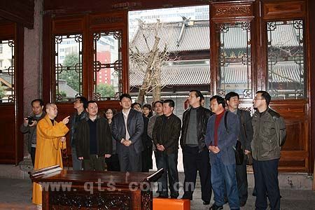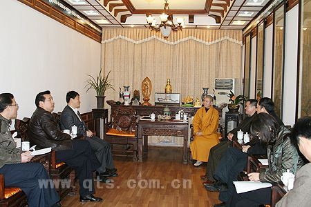 3月5日中午,嘉兴市民宗局陈振华局长带领嘉兴9县(区)民宗局长13人,在宁波市民宗局陆立宪局长、曹汴宏副局长、章洪春副处长的陪同下,莅临七塔道场参观考察,并听取了可祥大和尚关于七塔禅寺在“和谐寺庵”创建工作中的情况介绍。
