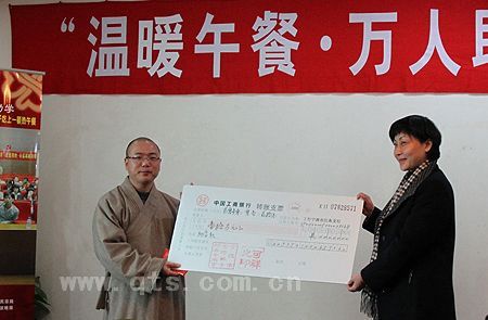 从2009年市扶贫办倡议“温暖午餐·万人助学”活动伊始,七塔禅寺就率先捐出了支持该活动的第一笔善款10万元;到政府有关主办部门号召全社会参与阶段,本寺又借佛陀诞辰日(农历四月初八)浴佛节,发动常住四众个人捐款25530元。截至目前,七塔常住及个人已向“温暖午餐·万人助学”活动捐款近23万元,在去年即被市扶贫办等单位授予“大爱无疆”光荣称号。