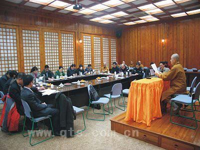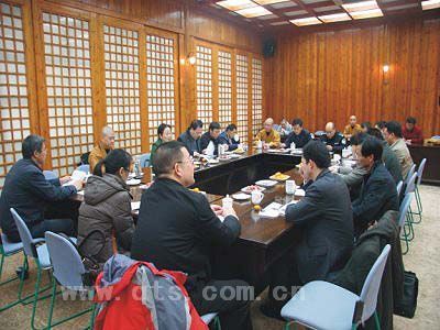 当日下午,尽管下着毛毛细雨,但委员们准时在15:00前陆续到达七塔寺的玉佛阁会场,纷纷对寺院发生的新变化发出由衷的赞叹!陈勤俭主席介绍了参加本次调研活动的委员及议程安排;然后,可祥大和尚向大家介绍了七塔禅寺的兴衰发展史,寺院的现状和具有时代特色的“七塔发展模式”,以及由此所取得的各方面业绩与赞誉,并详细介绍了寺院西北角扩建设计方案及遇到的难题。随后,委员们重点就扩建方案进行了热烈讨论,从扩建的意义、合理性、与周边环境的关系等方面着眼,提出了不少可行性建议。应邀参加活动的市规划局、交警支队及百丈街道办事处代表,分别从规划、交通、基层的角度说明了相关情况,表示对建设方案的支持。
