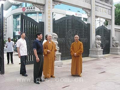 可祥大和尚向王毅主任介绍寺院维修情况