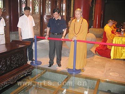 王毅主任一行观看三圣殿明代拜石的保护情况