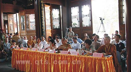 首先,恭请宁波市佛教协会会长诚信大和尚讲话,他说近年来全国佛教界兴起“讲经弘法交流”活动,方兴未艾,是秉承佛陀以法摄众教化育人的优良传统,亦是贯彻胡锦涛总书记提出“学识上有造诣”的殷切希望。宁波佛教史上自古高僧辈出,他们学养德行堪为世范。新世纪的宁波佛教,荷担如来家业的主体是僧人,因此开展“讲经弘法”活动,旨在经验交流,促进讲演宣教能力提高,培养弘法人才,其意义深远且极为重要。
