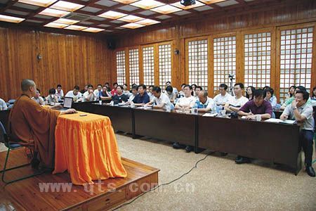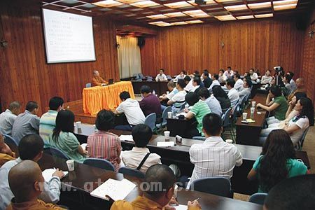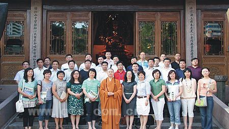 2009年6月19日下午,可祥法师应清华大学继续教育学院之邀,在本寺玉佛阁,为该院“酒店高管班”学员作“禅与人生”专题讲座。清华大学朱化锦老师、王甜甜老师和本寺监院定昌法师及50多位学员和本寺部分僧众,共100多人参加了此次讲座。讲座由清华大学继续教育学院白艳菲老师主持。