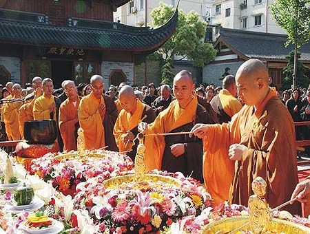 2009年5月2日(农历四月初八),佛光普照、微风抚面、喜气洋洋的日子,近500名甬城佛弟子相聚七塔禅寺,共同纪念伟大的三界导师――释迦牟尼佛的诞辰日。