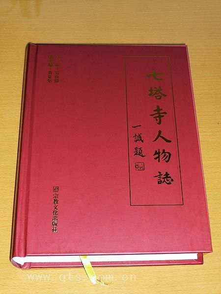 《七塔寺人物志》由七塔禅寺贾汝臻居士主编,中国社科院宗教文化研究所编审黄夏年教授任副主编,宗教文化出版社出版。该书属于“七塔报恩丛书”系列,为七塔寺近年来所进行的文化建设重点工程之一,由七塔禅寺住持可祥法师等所策划。全书正式开笔于2002年8月,由黄夏年教授担任主笔,后有南京大学博士研究生圣凯法师、七塔禅寺贾汝臻居士先后协助,参与撰写文稿。至2004年年底,全书文字初稿完成,进入修订阶段。后期根据“报恩丛书”编委会意见,由贾汝臻居士全面负责文字增补修订、图片收集编排等具体事宜,自2006年上半年开始,至2008年7月初完成全书文字工作,后在出版社排版期间,陆续选录、增补图片,并协助排版人员修正版面,至9月中旬完成全部任务,前后共历时6年有余。