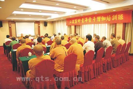 2008 年7月28日至30日,江北区佛教协会假华茂东钱湖酒店,举行为期三天的中青年骨干僧伽培训班,来自全区所属寺庵共35人参加了此次培训。