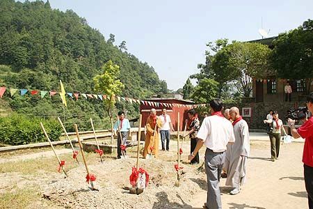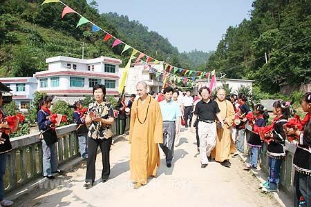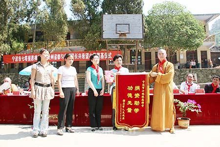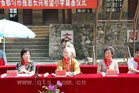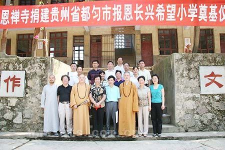 6月29日上午,万里晴空、阳光明媚、百花争艳的日子,在贵州省人大常委副主任唐世礼、黔南州人大常委会副主任杨筑萍、都匀市人大常委会副主任高越美、都匀市副市长蒙力、贵阳弘福寺住持心照大和尚等省、州、市领导的陪同下,七塔禅寺方丈可祥大和尚、监院界义法师、宁波江东区民宗局局长张志军先生、上海晶阳商品混凝土有限公司董事长章学林居士一行,头顶烈日、不辞辛劳地来到风光旖旎、山水秀美的都匀市洛邦镇绕河村,在此隆重举行报恩长兴希望小学奠基仪式。