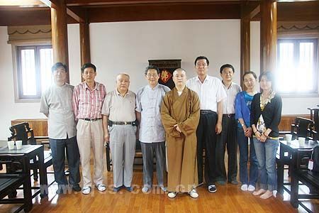 北京大学楼宇烈教授、中国社会科学院杨曾文教授、武汉大学麻天祥教授、日本爱媛大学邢东风教授,中国社会科学院研究员黄夏年教授,北京大学李四龙副教授,中国佛教协会张林副秘书长等一行,来普陀山参加“佛教与非物质文化遗产会议”,结束会议后途经宁波,于26日上午来寺参访,受到本寺方丈可祥大和尚和监院界义、定昌法师等热情接待。宾主双方在丈室会客厅进行了亲切交流,可祥大和尚就“如何做好信教群众工作”等问题,请教了楼烈宇和杨曾文教授,两位教授提出具有前瞻性的想法和建议,他们说七塔禅寺在弘法方面,已取得成效基础上,继续探索,努力践行,形成都市寺院管理模式。可祥大和尚对楼烈宇、杨曾文教授的真知灼见,非常赞赏,并表示竭力做好这项寺院基础性工作,以回报党和政府对宗教工作的关心和重视。同时,可祥大和尚诚挚邀请诸位教授、学者,今秋莅临宁波,出席“七塔禅寺建寺1150周年纪念暨报恩文化论坛——都市寺院与和谐社会”,各位均愉快接受邀请并表示积极参加。