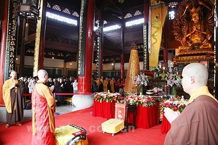 5月24日(农历四月初八)上午,甬城四众弟子及来寺参访的澳门信众等共约300人欢聚七塔禅寺圆通宝殿,隆重举行纪念佛陀诞辰2630周年大型浴佛法会。本寺方丈可祥大和尚随机为大众作了精彩开示。