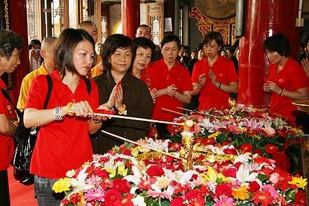 信徒排队浴佛