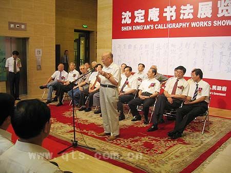 今年已80高龄的沈定庵老先生是中国书法家协会二届理事,浙江省书法家协会顾问,兰亭书会会长,西泠印社社员,浙江省文史研究馆馆员。从艺60余年来,他遍临汉魏六朝碑志,师古而不泥古,其书法融多种风格于一炉,自出机杼,各体皆能而尤精隶书。此次展览是沈老从艺60余年的成果展,首次系统地展示了他各个时期的书法代表作品。近60幅参展作品,大到宏幅巨制,小到盈尺斗方,皆融朴茂、古拙、雅致于一体。凝重浑雄的篆书、灵动多姿的行草书、绵和秀润的楷书,尤其是端庄沉雄的隶书,意境高古博大,体势雄强,骨力厚重,全方位多角度地展现出沈老的艺术成就、艺术风格和创新精神。