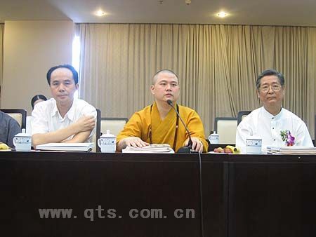 可祥法师在研讨会上发言。左为中国佛协教务部主任宗家顺