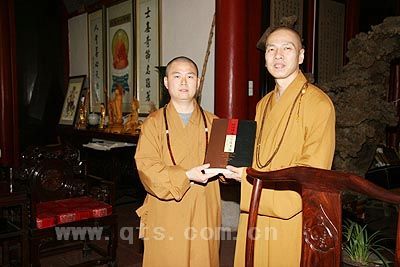 可祥大和尚赠送五百罗汉画册与明义大和尚
