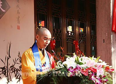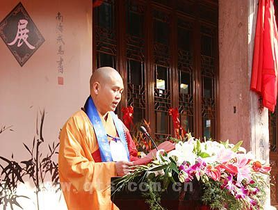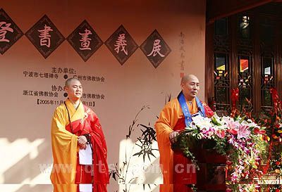 宁波市政协副主席、市文联主席傅丹女士代表地方也发表了热情洋溢的讲话。在讲话中,她强调指出,七塔禅寺积极弘扬佛教文化,与广州市佛教协会联合举办这场书画义展,对宁波的文化繁荣起到了非常良好的作用,促进了宁波与广州两地的友好往来,为构建社会主义和谐社会作出了积极的贡献,她祝愿这次书画义展取得圆满成功。