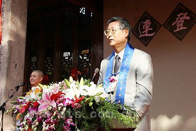 广东省佛教协会副会长兼秘书长、广州市佛教协会副会长、六榕寺方丈法量大和尚上台宣读了广州市人民政府的贺信。