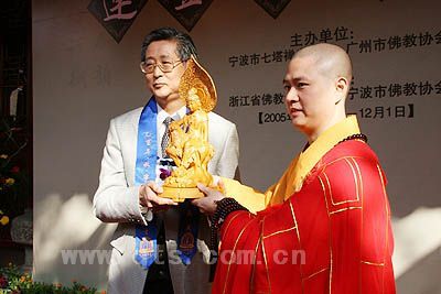 连登居士讲话后,可祥大和尚代表七塔禅寺常住,向连登居士赠送了精美纪念品。