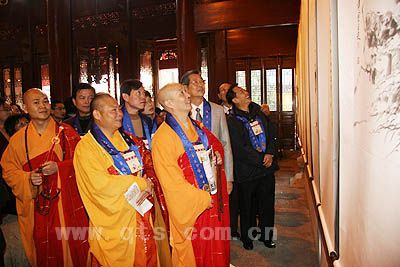 参加本次书画义展开幕式的诸山长老、大德居士主要有:中国佛教协会副会长、浙江省佛教协会会长、普陀山全山方丈戒忍大和尚,浙江省佛教协会名誉会长、天童寺退居方丈广修长老,中国佛教协会副秘书长、上海市佛教协会副会长、龙华寺方丈照诚大和尚,广东省佛教协会副会长、广州市佛教协会会长、华林禅寺方丈光明大和尚,广东省佛教协会副会长兼秘书长、广州市佛教协会副会长、六榕寺方丈法量大和尚,贵州省佛教协会副会长、贵阳弘福寺住持、遵义市湘山寺方丈心照大和尚,浙江省佛教协会副会长、宁波市佛教协会名誉会长、奉化雪窦寺方丈怡藏大和尚,宁波市佛教协会会长、天童寺方丈诚信大和尚,宁波市佛教协会副会长、阿育王寺方丈界源大和尚,杭州市佛教协会副会长、灵隐寺监院觉乘法师,浙江省佛教协会秘书长徐明仁居士,广州市华严禅寺住持印觉大和尚,浙江省桐乡市香海禅寺住持贤崇大和尚,宁波市佛教协会副会长、居士林林长徐文芳居士等。莅会的各级党政领导主要有:贵州省政协副主席唐世礼女士,宁波市人大副主任郑杰民先生,广州市政协副主席傅汉洵先生,原宁波市政协副主席洪钧杰先生,宁波市政协副主席陈云金先生,宁波市政协副主席、市文联主席傅丹女士,宁波市委、市政府副秘书长顾松辉先生,贵州省政协民宗委副主任韩侃先生,贵州省宗教事务局副局长张开银先生,浙江省兰亭书会主席沈定庵先生,宁波市委统战部副部长陆立宪先生,宁波市民族宗教事务局副局长徐松庆先生,宁波市江东区政协主席王兴国先生,宁波市江东区政协副主席、统战部部长李盛潮先生,宁波市江东区统战部副部长、民宗局局长李贯才先生,宁波市书法家协会主席胡茂伟先生,广州市书法家协会副主席江泽桂先生等。莅会的企业界友人主要有:宁波市东港大酒店董事长刘明道先生,宁波市企业家协会会长陈政平先生,宁波市双鹿集团董事长陈恩乐先生,宁波市华信教育集团董事长徐旭昶先生,浙江省振兴控股集团董事长屠春富先生,宁波市建工集团董事长王宇凌先生,宁波宁兴控股集团公司董事长吴以钢先生,福建省武夷山市武夷星茶叶有限公司董事长何一心先生,宁波市宁兴汽贸公司总经理李培先生,广州市开发区建设总公司总经理尹东宏先生,广东创利拍卖有限公司董事长陆穗南先生,广州市世概广告公司董事长连泽强先生,广州市世概广告公司董事、总经理连公博先生,广东信一投资咨询有限公司董事长伍光伟先生等。参加义展开幕式的还有来自全国各地及宁波本市的法师、居士、信众,以及社会各界人士,大约3000人。