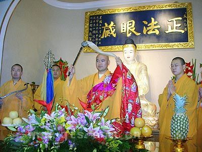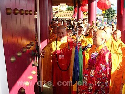 金秋时节,风和日丽,美国加州当地时间2005年11月13日上午,位于洛杉矶罗斯密市的法印寺内,张灯结彩,花团锦簇,佛旗飘扬,殿堂亮丽,一派祥和热烈的景象。宏正法师荣膺法印寺第二任住持升座大典在这里隆重举行。