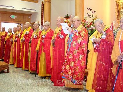 应邀参加此次庆典活动的各界贵宾主要有:镇江金山寺住持心澄大和尚,南京毗卢寺住持传义大和尚、都监净朗法师,宁波七塔禅寺住持可祥大和尚、监院传道法师,常州天宁寺监院和融法师、恒模法师,南京栖霞寺监院传林法师,南京栖霞山佛学院副院长理海法师,南京小九华地藏寺住持传真大和尚,宁波招宝山宝陀寺住持法正大和尚,湖北黄石东方山弘化寺住持正慈大和尚,湖南南岳上封寺住持怀泉大和尚,湖南株洲空灵寺住持怀众大和尚,广东汕头迭石岩寺住持耀智大和尚,江西万寿禅寺住持开明大和尚,如皋定慧寺都监性贯老和尚、监院宏学法师,如皋法华寺监院宏惺法师,纽约东禅寺开山浩霖长老、住持通智大和尚,纽约法雨精舍住持品道大和尚等。出席这项活动的美国民选官员,包括加州众议员赵美心,罗斯密市众议员陈奕泉、纽尼兹(hohn nunez),嘉伟学区教委罗亨利、布切(bib bruesch),国会议员苏丽丝(solis)的社区代表徐和生等,以及来自各地的佛教四众弟子、信众等,共达三千多人。