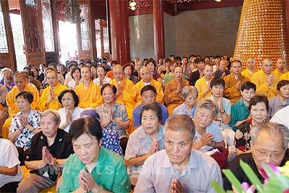 10月1日,为了庆祝共和国56岁华诞,可祥大和尚特别邀请北京圆慈法师来宁波,为甬城四众弟子宣讲《吉祥经》,在七塔禅寺三圣殿举行了为期一天半的讲经法会。