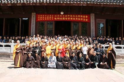 8月15日,宁波七塔禅寺、江东法王寺、江东区佛教协会联合,在七塔禅寺圆通宝殿隆重举行了纪念抗日战争暨反法西斯战争胜利60周年祈祷世界和平法会,来自七塔禅寺、法王寺及宁波市区的佛教四众弟子300多人参加了此次大型法会。江东区民宗局局长李贯才先生莅临法会进行指导。