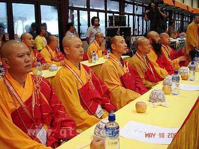 升座法会后,与会嘉宾齐集罗汉堂举行上供过堂午斋。斋后举行了浴佛仪式。