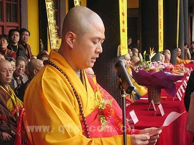 12月13日(农历11月初2日),中国著名禅宗道场、宁波鄞县天童禅寺隆重举行了诚信法师荣任方丈升座法会,来自全国各地的佛门四众弟子、政府有关领导,以及日本、韩国、印尼、马来西亚等国的法派弟子近万人参加了法会庆典。可祥大和尚应邀主持了欢迎宴会,并在升座法会庆典上,代表宁波市佛教界致贺词。