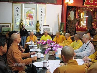 座谈交流会上,可祥大和尚首先对四川佛教代表团的来访表示欢迎,并向客人介绍了七塔寺的历史、现状,以及寺院的七大管理理念,追忆了昔日与四川佛教界的友好交往过程,同时向客人们赠送了《七塔寺志》等资料。接着,受考察团团长王增建委托,四川省佛协副会长、广安龙泽寺住持素全法师代表考察团,对可祥大和尚的热情接待表示感谢,说自己十多年前曾来过七塔寺,那时影响寺院很破旧,僧人面貌也不大精神;如今的感觉是面貌焕然一新,寺院充满了朝气与活力,给人许多新的启发和感触;沿海地区经济比较发达,佛教也同样发达,有许多值得学习和借鉴的地方,此次考察团的使命主要是学习和取经,要把像七塔寺这样的丛林寺院先进的管理经验带回去等。