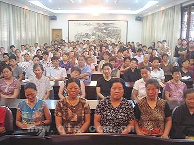 报恩讲堂内听讲经的信众达数百人