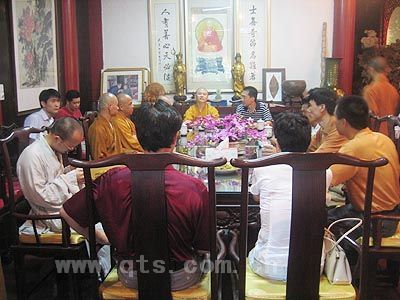 代表团在监院传道法师带领下参观了各殿堂及“栖心一览”文物室。可祥大和尚在方丈殿热情接待了来访的客人。