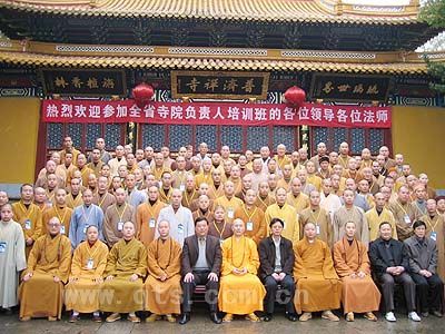 培训班由浙江省佛教协会主办,省民宗委协办。开幕式于29日上午召开,省佛协副会长可祥大和尚主持会议。省佛协会长、普陀山全山方丈戒忍大和尚首先传达了全国“两会”精神,并就举办这次培训班的目的和要求作了重要讲话。省民宗委周勇辉处长、舟山市民宗局刘大中局长应邀出席开幕式并讲了话。