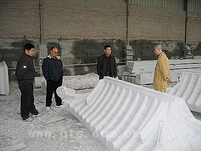 在台明公司董事长苏启明等人的陪同下,可祥法师一行参观考察了其公司作业现场,对前期工作表示满意,并现场商定了山门楹联、结构模式、雕刻图样及安装时间等具体细节问题。最后,法师要求该公司再接再厉,精益求精,严把质量关,一定要将七塔禅寺山门牌楼创建成一流作品,为古刹锦上添花。