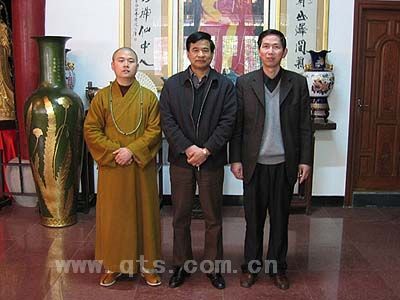 可祥大和尚与郭正伟副书记、徐松庆副局长在丈室合影