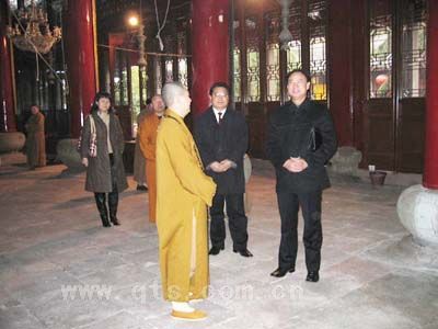 可祥法师陪同省民宗委主任钟小毛参观新修的三圣殿